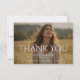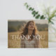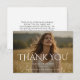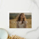 Dela med din uppskattning med detta moderna tack-fotokort för examen. Designen har elegant typografi med ett stort ”TACK” meddelande placerat över en vacker bakgrund med foto. Den rena och raffinerade bokstaven skapar en sofistikerad look samtidigt som examen fotot förblir huvudfokus.