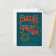 Skål för en fantastisk resa runt världen Grattis på födelsedagen Modernt citat med bokstäver i teal och orange.