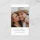 Moderna och professionella visitkort för fotografer som visar ditt foto med trendig minimalistisk handskrifts typografi. Lägg till din kontaktinformation på baksidan. Inkluderar tre sociala media-ikoner och ett fält för ditt användarnamn.