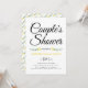 Handskriven typografi gula blommor enkel blomsterbröllop för par dusch inbjudan. Den visar era namn i en kursiv skrift handskriven stil typografi och två små gula blommor med gröna blad. Baksidan har ett blommigt mönster.