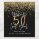 Fira din 50-årsdag i stil med den svarta, vita och guld glitter-effekten som skapar 50-stifts märkning av vin, öl och vatten party. En modern design med skripttext och fet grafik. Ändra färg för att anpassa. En del av en samling.