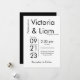 En enkel, modern, men djärv, svart och vit bröllopsinbjudan. Gör ett påstående med denna vackra och unika inbjudan. Finns även i många färg.