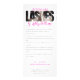 Behålla ett rackkort för att informera dina kunder om den viktiga eftervården. Det här kortet är designat för att komplettera ditt djärva varumärke. Med samma slående "LASHES"-typografi med ett dramatiskt närfoto från öga kombinerar det här kortet stil och funktion. Den rena layouten ger viktiga extra efterbehandlingstider på ett tydligt och professionell sätt - perfekt för konstnärer, estetiker och skönhetsproffs som vill behålla sina kundresultat och återspegla ett högklassigt, sammanhängande varumärke.