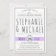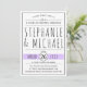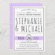 Den moderna svarta och vita typografin bröllop inbjudningskort för möhippan accentuerade med lavender lila. Den visar din text i svart på vitt och datum för din möhippa på en lavendelbanderoll. På baksidan finns ett mönster med vitt kor på lila.