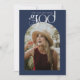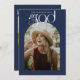 Ett modernt typografiskt skript med ren och Chic och med ett bådat foto ram på en marin och blå färg-bakgrund. Anpassa enkelt dina foton och inbjudningsdetaljer i studenten på framsidan och baksidan.