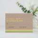 Modern typografi och rand minimalistiskt färgstarkt svar eller svarskort från rustik bröllop OSA som innehåller text i ett modernt stort teckensnitt i korallpersika och chartreuse grönt färg och rand på bordsfarkoster ser papper ut. Text i brunt. I stället för "och" finns plustecknet i en korallcirkel i ord. Denna moderna och contemporary anpassade bröllop-mall är en del av en uppsättning eller samling i bröllop, har vintage/återkänsla för den och är perfekt för en avslappnad vår och fall eller höst bröllop. Observera att det inte finns någon riktig kartong bara för tryckt BILDER.