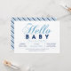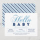 Fira en speciell dag för din älskade med denna moderna bebis dusch inbjudan! Denna design har enkel men stilren typografi " Hej Bebis" med blå och marinblå färgtema.