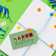 märkre av födelsedagspresent i personlig med texten "Grattis på födelsedagen" skriven med två helt olika typsnitt av anpassadet. Färgen på fyrkanterna och bakgrunden är också anpassade.