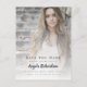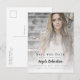 Meddela din (eller ditt barns) prestation i studenten med den här eleganten "Spara datum"-inläggskort som innehåller ditt foto med modern skripttypografi. Anpassa den med de mallar som finns för ditt foto, namn och datum på framsidan. Mallarna för meddelandet och returadressen finns på baksidan.