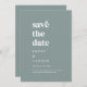 Denna moderna grönt för typografi innebär att datumet sparas som perfekt för ett enkelt bröllop. Grönten Sage och den vita designen har ett retro-ändå-contemporary med en unik rustik bohemisk känsla.