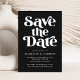 Spara datumkortet med "Spara datumet" som visas med fet vit text med en speglad svart bakgrund. Anpassa snyggten spara datumkortet med namn, bröllop-datum, plats, bröllop webbplats och annan viktig information om bröllop.