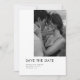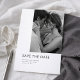 Ett modernt svart-vitt fotobröllop save-the-date med ren typografi och minimalistisk layout. Denna eleganta monokroma design blandar samtida stil med tidlös sofistikation, perfekt för par som älskar enkel, raffinerad bröllopsmaterial.
