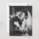 Modern typografi Bröllop Photo Tack Postcard med vitt skript i elegant på framsidan och svart skript på baksidan. Lägg enkelt till foto och anpassningsbar på vykortets framsida och baksida.