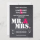 Mr och Mrs Modern typography black, shock rosa chalkboard bröllopsinbjudan med de vita artigheterna Mr. och Mrs. Den här moderna och contemporary elegant bröllop-malldesignen med vintage har en strålande fläkt. Det är roligt och trendig och är en del av en samling i bröllop eller en perfekt för fullt anpassade för ett vinterbröllop.