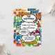 En modern trendig typografisk serietidning popkonst-inspirerad bröllopsinbjudan som sätter BAM, ZAP, POW i vilken superhjälte-kalas som helst. Baksidan har ett matchande serietidningsmönster som du kan ersätta med din egen bild eller foto. Designad av Thisisnotme