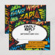 Trendigt modernt serietidnings- popkonst-tematiserat talbubbla-superhjältebröllop RSVP. Designad av Thisisnotme©