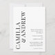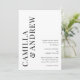 En modern typografisk svart-vit QR-kod bröllopsinbjudan med stora parnamn och detaljer på framsidan. Baksidan har en QR-kod med ytterligare detaljer för gäster, vilket gör detta till ett budgetvänligt alternativ som klarar sig på egen hand.