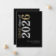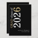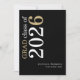 Modern Typography Black 2026 Graduation. A modern stylish typographical design to announce the news of your graduate, with stylish large typography rotated and to the left hand side at the top in white and gold on a classic black background. Easily personalise the rest of the text. including your message on the back