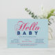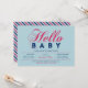 Högtidlighålla en speciell dag för din älskade med den här moderna babyduschinbjudan! Den här designen har enkel typografi av snyggten " Hej Baby" med ett rött och marint blått färg.