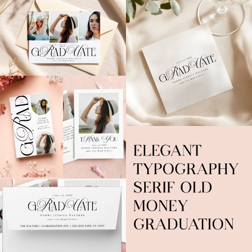 Modern Typography Multi Photo Elegant Graduation Inbjudningar