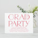 Inbjudningskorten i Modern grad party med beteckningen "Grad Party" visade i trendig rött brev med studenten-året. Anpassa inbjudningskorten för den röda studentfesten med uppgifterna om student namn och party som visas nedan. De djärva inbjudningarna till studentfest av typografi är perfekt för studenter i högskolan och högskolan.