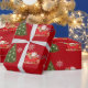Modern Unicorn Santa Snöflingor XmasTree Red Presentpapper