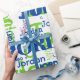 Modern Upprepande Namn Blue Grönt Font Mönster Presentpapper