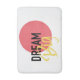 Modern, djärv och dynamisk grafik med ett ordspråk som "Dream Big", med cirkelform i svart, gult och rött färg. Urban, handskriven, stil-typografi med penseldrag.