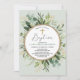 Elegantens baptisminbjudan med vackra vattenfärgade krängningar och löv av krans och faux guld