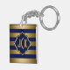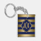 Elegantens moderna utformning, blå och guld rand mönster med anpassade monogram.