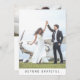 Modern, enkel och elegant "Beyond Gratthy"-fototack för bröllop-kortet. Utformningen har plats för ett foto på framsidan och ett foto på baksidan tillsammans med anpassadet. Anpassa designen genom att överföra dina foton och ersätta exempeltexten.