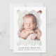 Gratulera till att baby har kommit med detta gender-neutralt, modernt födelsebesked! Den minimalistiska designen visar ditt lilla foto med lodrät som är perfekt inramat i en lekfull vågigt ram på en vit bakgrund. Lägg till din baby namn och födelsestatus under i snyggt, contemporary typsnitt. Baksidan innehåller ett foto med vågrät med plats för ditt anpassningsbar-meddelande och skapar det enkelt att en söt anteckning med nära och kära. En enkel och charmig design med en subtil reflex!