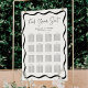 Behålla din mottagning organiserad med det här moderna Cream- och Black Vågigt Ram Bröllop sätesschemat Poster. Utformningen har en mjuk gräddbakgrund med en slående svart vågigt gräns, som visar upp till 16 bord med gäst namn placerad under varje rubrik. Överst markeras "Hitta ditt säte" i ett handskript för elegant, medan namn och bröllop fyller i designen nedan. Snyggt och praktisk användning kan du skriva ut eller ladda ned det här poster för att skriva ut i hemmet.
