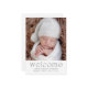 Ett enkelt modernt födelsemeddelande som nyheten om ert nyfödda baby. Kortet är en perfekt för pojke eller flicka. Det är ett foto på framsidan och välkommet och är personlig med baby namn, födelsedatum, födelsestatus och ett personligt meddelande från Mamma och Pappa