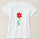 Vacker T-Shirt med hjärtblommor från mode vår i rött, gult och ljusblått. Idealisk för alla! Må den universella blomman i kärlek! Text kan vara personlig.