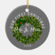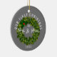 Modern Vår första jul, Mr. och Mrs. Anpassningsbar Year Ceramic Ornament, gör en underbar nyckelpresentidé för ett nytt par under helgdag. Båda sidor av dekoratet är designade med anpassade grått-bakgrund och modern dekorativ krans med tillsatt grönt och röda hollbär. "Vår första jul som Mr och Mrs" i det vita kalligrafskript som skriver och blockerar bokstäver följt av anpassningsbarnas år. KLICKA PÅ ALTERNATIVET PERSONALISERA MALL OCH ANGE ÅR.