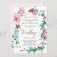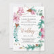 Modern vår pink mint magnolia krans bröllop inbjudningar