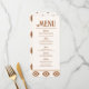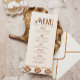 En modern västerländsk bröllopsmeny med varma neutrala toner och djärva sydvästinspirerade mönster. Perfekt för ranch, öken eller utomhusbröllop med en semi-formell västerländsk känsla.