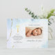Tack, ditt kort har en faux guld-folie kor, parad med moderna typsnitt och vacker blå bakgrund, tillsammans med dina baby-foton. Formuleringen kan ändras för Baptism, First Communion eller Christening. Mutta toner behållor utseendet minimalt och sött. Lägg till anpassning och ytterligare foton på kortets baksida. Lägg till anpassningsbarnas ordalydelse till den här designen genom att använda rutorna "Redigera den här designmallen" på objektets höger eller klicka på den blå "Anpassa den" för att ordna texten, ändra typsnitt och färg och för att lägga till ytterligare information eller bilder till den här designen. Klicka på Anpassa ytterligare om du vill öppna redigeringsalternativ för fullt. Om du behöver några samordningsposter (tack, kort osv.) kontaktar du mig för en anpassningsbar. ****Om du vill ha min hjälp med anpassningsbarna ska du inte ställe denna vara i din vagn. I stället skickar du e-post till mig din begäran på lauralise@iyhtvdesigns.com En länk till din vara skickas till dig via e-post till gången som posten är tillgänglig för. Du kan använda som länkar till ställe din beställning. Tillåt upp till 48 timmar.