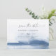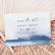 Det här moderna vattenfärgsblå vågrät sparar datumkortet som perfekt för en snyggt contemporary bröllop. Den minimalistiska, klassiska och elegant designsamlingen har enkla penseldrag för vatten färg i söt juveltoner.