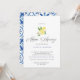 Fira bruden med denna eleganta medelhavsinspirerade bröllopsinbjudan. Med vattenfärg citroner, mjuka blå blommor och handskriven text, är det perfekt för en sommar- eller trädgårdsbröllop. Anpassa texten enkelt för ditt speciella evenemang. Idealiskt för en citron-tematisk, italiensk-inspirerad eller rustik chic-firande.