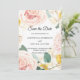 Meddela din stora dag i stil med detta eleganta vattenfärg blomstermotiv Save the Date-kort. Med mjuka rosa, rosafärgade och gula blommor och ömt gröna blad, sätter denna moderna botaniska design den perfekta tonen för vår-, sommar- eller trädgårdsbröllop. Anpassa enkelt med era namn, datum och plats för att skapa en vacker skräddarsydd bröllopsannons.