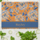 Ett vackert och modernt pastellfärgat blåa blommor sömlöst mönster med personlig namn på orangens köldhandduk. Det är vackert och sött när som helst, som jultoma, födelsedag, mors dag eller valentins unika gåva till henne som kärlek färgade blommor mönster. Du kan ändra texten och färg med Zazzles verktyg för anpassning.
