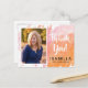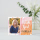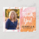 Med det här studenten-tacket har du en rosa för trendiget och en vattenfärgad bakgrund för orange som är målad. På framsidan finns ett foto från lodrät ram och namn i student. På baksidan finns anpassningsbar för returadressen.