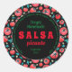 Vattenfärg tomat mönster på svart bakgrund, för mexikansk mat älskare, hemmalagd grönsaksträdgårdsmästare, ekologisk matproducent, hemlagad salsa, dip eller smörgåspålägg matkonserver etikett etc. Texten består av produktnamn, producentens namn, datum och ingredienser och kan enkelt redigeras, raderas eller anpassas.