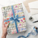 Modern Watercolor Flower Mönster Wrapping Papper, Vin Label, Kopp för Soppa, duntäcke, Throw, Ull och Sherpa Blankets