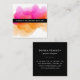 affärskort med vattenfärg i chic i ett unikt fyrkantigt format har ditt namn eller företaget namn i vitt på svart, med ett bläckfläck i en ljusstark, färgstark solnedgång av fuchsisk rosa och goldenrod. Lägg till kontaktinformationen för fullt längst bak.