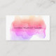 affärskorten för vattenfärg i chic har ditt namn eller företaget namn som har ett lager på en blommande inkblotillustration i nyanser av rosa, violett och guldkorall. Lägg till kontaktinformationen för fullt i svartvitt. Innehåller ditt lojalitetserbjudande för anpassningsbarna (visas med "njut av 20 % av alla tjänster efter fem besök") och sex punchouts.