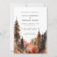 Meddela ditt fall-bröllop i stil med våra moderna och minimala inbjudningskort för anpassade. Med en modern vattenfärgsmålning av en fallskog i guldhösten färg tar våra kort upp det väsentliga i utomhusskönheten. Anpassa den här inbjudningsmallen med din egen bröllop-information och lägg till ditt eget foto på baksidan för att få en verkligt unik beröring. De här bröllopsinbjudningarna, som tryckts på premiekortet lagrar, ger ett bestående intryck. Perfekt för bröllop i bergsområden, fallbröllop och firande utomhus.