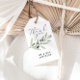 Modern vattenfärgsförmån för botaniskt bröllop med presentetikett